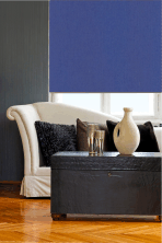 Produkt: Rollo Maßanfertigung in Stofffarbe Blau mit Seitenzug links in den Warenkorb legen
